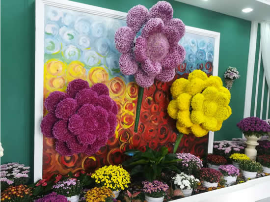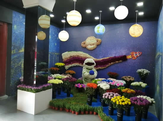 以營造氣氛為主,格調(diào)簡潔大方、氛圍隆重熱烈。通過時尚現(xiàn)代的菊花造型和景觀小品,擷取當下花卉展覽中的流行元素,