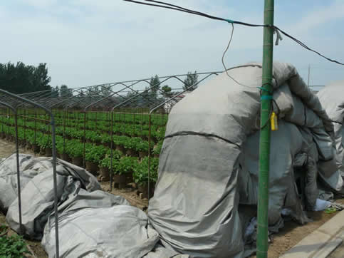 ③若遮蓋期間棚內(nèi)溫度過(guò)高,可往棚面噴灑涼水降溫,如果條件允許,圃地晚間沒(méi)有任何光源照射時(shí),可在天色黑透后,將遮蓋物揭起;天透亮前再將它蓋上直至上午揭開(kāi)。這樣可防止菊花后期竄高,影響品質(zhì)。